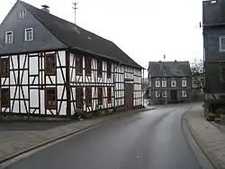 Hauptstraße. In the house in the middle of the picture, the indoor scenes of the film Schinderhannes were made, as were those of Haus Simon in the first part of the Heimat series