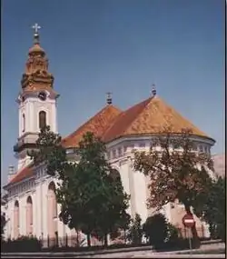 The Romanian Catholic Eparchy of Oradea Mare is an eparchy (equivalent to a diocese in the Latin Church) of the Romanian Greek Catholic Church which is an Eastern Catholic particular church of the Catholic Church that is in full communion with the Holy See. Its uses the Byzantine Rite in the Romanian language in its liturgical services. It was founded in 1777. It is a suffragan diocese of the Major Archeparchy of Făgăraș and Alba Iulia.[1] The eparchy's cathedral church is the Cathedral of Saint Nicholas which is situated in the city of Oradea, Romania. The incumbent eparch is Virgil Bercea.