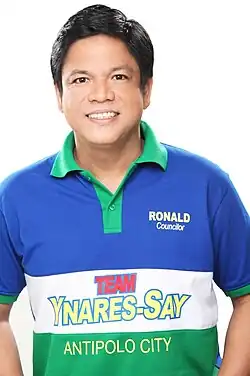 Ronald R. Barcena (born June 3, 1975) is a Filipino politician. A member of the NPC party, he was elected as a Member of the Sangguniang Panlalawigan of Rizal Province, representing the 1st District of Antipolo, beginning in 2010. Prior to his election to Rizal Province, Barcena was elected to three terms as Councilor and Sangguniang Kabataan President of Antipolo.[1]