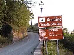 Rondine is a small village in the Province of Arezzo, in Tuscany, Italy. It is located 12 km from the town of Arezzo. The settlement dates from the 11th century, when the castle (Castello di Rondine) was built. This castle, since fallen into ruin, is currently undergoing restoration. The Associazione Rondine, which brings together students from areas of conflict in order to promote peace and reconciliation, is based in the village.