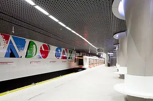 Rondo ONZ is a station on the central part of Line M2 of the Warsaw Metro.