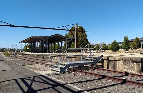 After the station building was destroyed by fire in June 2011, the site was redeveloped as a cultural park with the platform retained.[2]