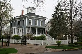The Ropp-Grabill House is a historic house in the Irving Park neighborhood of Chicago, Illinois. While the house's construction date and original owners are unclear, it was built sometime in the early 1870s, making it part of the first wave of development in Irving Park. At the time, the neighborhood was still meant to be a wealthy garden suburb of Chicago, and it was not until later in the century that it became a dense neighborhood of the city. The house was designed in the Italianate style, a popular choice at the time, and includes oriel windows on its south side, bracketed eaves, and a cupola. Its name comes from two of its longtime tenants; the Ropp family lived in the house from 1891 until 1943, while the Grabill family lived there from 1943 through 1977.[2]