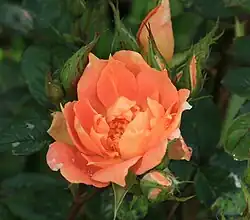Jack Harkness (1918–1994) is the grandson of the original co-founder John Harkness.[2] He established the first rose hybridization program at the company in 1962, developing vigorous, healthy roses by hybridizing from wild rose species.[3] In the 1970s he began breeding with Rosa persica, an unusual rose species with simple leaves.[4] During his career, Harkness developed many successful rose cultivars, including 'Alexander', 'Mountbatten' and 'Amber Queen'. He is best known for his floribundas and hybrid tea roses.[5] The rose cultivar, 'Bridge of Sighs', was developed by Harkness and introduced into Britain by Harkness Roses in 2000. Harkness named 'Bridge of Sighs' after the Hertford bridge at Oxford, where his brother, Peter Harkness, attended university. The stock parents of 'Bridge of Sighs' are unknown.[6]