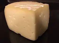 Rosa Camuna (Lombard: Roeusa Camuna) is an Italian mild semi-hard paste cheese made with partially skimmed cow's milk. Its shape and name come from the Camunian rose of Val Camonica where the cheese is produced. It has an ivory white color inside with uniformly spaced tiny eyes, and a soft bloomy rind. It has a mild taste and melts very well.[1]
