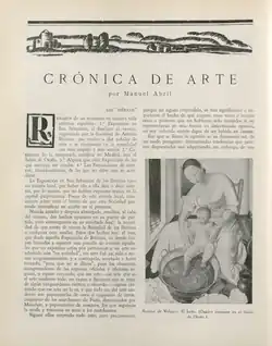 «Crónica de arte» by Manuel Abril published in number 59-60 of the Revista de las Españas (July-August 1931), with a review of the Iberian exhibitions and the Salón de Otoño, where "The Bathroom" of Rosario stood out. Velasco, "who has begun his public career with a very dignified cadre and very unusual qualities and commitment."