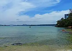Rose Bay beach (also known locally as Dog Beach) is at the far eastern end of the bay and as the name suggests is a popular beach for dog owners.[16] Despite its popularity, Rose Bay beach is not always safe to swim at due to the pollution issues surrounding the beach.[17]