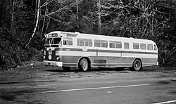 A 1948 Twin Coach bus of Rose City Transit laying over in Linnton in 1963