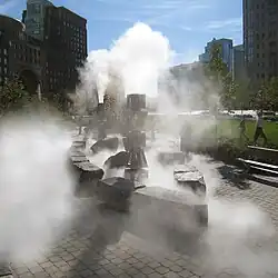 A permanent installation, Harbor Fog,[95][96] by Boston artist Ross Miller, is located in the Wharf District Parks.
