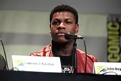 Tran was not used to living without her established support system, and often felt scared and lonely during filming, occasionally crying because she wished her friends could be part of the experience.[110] To combat the isolation, she joined an improvisational theatre class in London, kept journals, and sought companionship from her fellow cast members, especially John Boyega.[110] Tran shared more scenes with Boyega than any other cast member, and she said it was very easy to work with him,[8] and that she learned a lot from him. The two laughed and joked regularly on the set,[102][134] and occasionally improvised during filming.[10][123] Tran said of Boyega: "John is someone who I feel like I immediately was able to mesh with. We connect on different levels because our parents are immigrants, we're both people of color, nerds, and he's just hilarious."[110] At one point after filming a scene together, Boyega said to Tran, "Kelly, we are making history," which helped the actress realize the magnitude of appearing in the film.[113] She said of Boyega: "He was the best partner I could have had on a massive movie like this."[134]