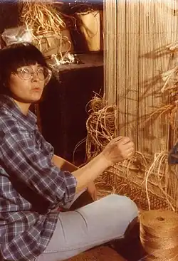 Concentrating upon tapestry, she mounted two solo museum exhibitions in Geneva (1970 and 1979); she produced more than seventy fiber works in fifteen years. During this time she also met Peggy Guggenheim, who commissioned a tapestry from her and introduced her to Thomas Messer, then-curator of the Guggenheim Museum.[8]
