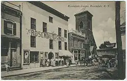 The first building constructed on the site now occupied by the Theatre was reputedly a blacksmith shop, erected during the 19th century to service the town's cement mills and the Delaware and Hudson Canal.[1] The current three-story[1] structure was opened in 1905[2] as the Rosendale Casino.[3] As a casino, the building doubled as a theater, screening movies in the 1920s[1] on 16 mm film.[3]