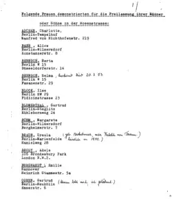{{cite book}}: CS1 maint: location missing publisher (link) - ^ "The Rosenstrasse Demonstration, 1943". United States Holocaust Memorial Museum. USHMM. Retrieved December 5, 2019.