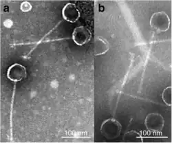 - ^ a b Huang, Yang; Sun, Hui; Wei, Shuzhen; Cai, Lanlan; Liu, Liqin; Jiang, Yanan; Xin, Jiabao; Chen, Zhenqin; Que, Yuqiong; Kong, Zhibo; Li, Tingting; Yu, Hai; Zhang, Jun; Gu, Ying; Zheng, Qingbing (2023-06-17). "Structure and proposed DNA delivery mechanism of a marine roseophage". Nature Communications. 14 (1): 3609. Bibcode:2023NatCo..14.3609H. doi:10.1038/s41467-023-39220-y. ISSN 2041-1723. PMC 10276861. PMID 37330604.