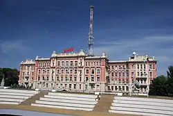 In 1796, the settlement was chartered and in 1797, it became the seat of Rostovsky Uyezd within Novorossiysk Governorate.[2] In 1806, it was officially renamed Rostov-on-Don.[2] During the 19th century, due to its river connections with Russia's interior, Rostov developed into a major trade centre and communications hub. A railway connection with Kharkiv was completed in 1870, with further links following in 1871 to Voronezh and in 1875 to Vladikavkaz.