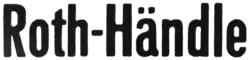 The classic filterless version is best known. The variant "Roth-Händle filter" also existed up until October 2017. The cigarettes are sold in a "soft pack" and with a traditionally held black inscription on a red background (filter: white letters on a red background). Under the name "Roth-Händle", the red hand used on the packs is a registered trademark. A fine-cut tobacco is also available under the name "Black Hand", corresponding to the character of the Roth-Händle.[5]