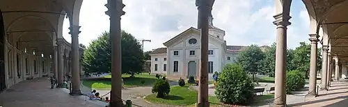 The Rotonda della Besana (also known as Rotonda di Via Besana or Complesso di San Michele ai Nuovi Sepolcri, and originally as Foppone[1] della Ca' Granda)[2] is a late baroque building complex and former cemetery in Milan, Italy, built between 1695 and 1732[3] and located close to the city center. The complex comprises a lobate hectagonal colonnade portico enclosing a garden and the deconsacrated church of San Michele ai Sepolcri ("Saint Michael by the Sepulchers").[2] The portico was designed by architects Francesco Croce and Carlo Raffaello Raffagno, while the church was designed by Attilio Arrigoni.[2] Although originally a cemetery, over time the Rotonda has been adapted for a number of other uses; today, it is a leisure area and a venue for cultural events.