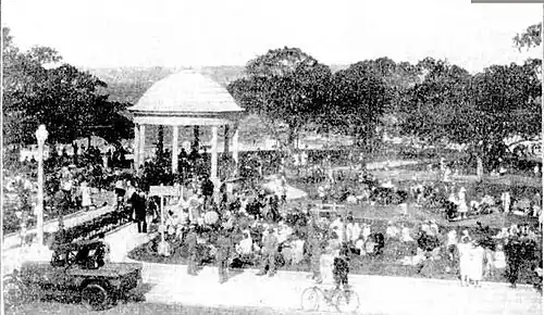 Balmoral Beach Rotunda in 1932 with an audience listening to a brass band.