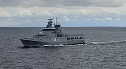 In 2007, Brunei contracted the German Lürssen shipyard to find a new customer for the three ships, though by 2011 the vessels remained unsold and laid up at Barrow-in-Furness.[18] These ships were eventually purchased in 2013 by the Indonesian Navy for £380 million, or half of the original unit cost, and renamed Bung Tomo-class corvette.[19] KDB Darussalam and KDB Darulehsan are two new Darussalam-class offshore patrol vessel (OPVs)[20] that Brunei purchased for the RBN at the beginning of 2011. Launched on 6 January 2011, KDB Darulaman, the third Darussalam-class OPV, was the first to be put into the water for its acceptance testing in the harbour and at sea before to its August 2011 delivery date.[14]