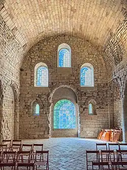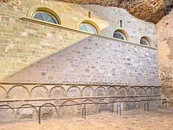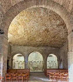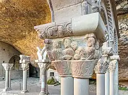 The cloister, built ca. 1190, contains a series of capitals with Biblical scenes that originally were arranged in chronological sequence, a design found elsewhere in the region.[1]