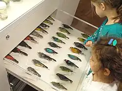 The Patrick and Barbara Keenan Family Gallery of Hands-On Biodiversity introduces visitors to the complicated relationships, which occur among all living things in a fun and interactive space. People of all ages can explore touchable specimens and interactive displays while gallery facilitators help visitors discover the living world around them. Mossy frogs, a touchable shark jaw, snakeskin, and a replica fox's den are some of the objects that connect young visitors to the diversity and interdependence of plants and animals.[62]