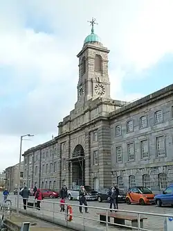 Quadrangular storehouse building, designed, built and operated as the nerve centre of the whole of the Royal William Yard; begun in 1829, this was the second building to be constructed on the site.[2] All administration was carried out here and it served as a major storehouse for food, clothing and equipment.[12] As of 2014 it was scheduled to be converted into a hotel.[13] The central cupola contains the yard's original (and still functioning) quarter-chiming clock of 1831 by Benjamin Lewis Vulliamy.[14]