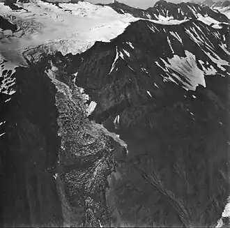 Rubble Glacier, mountain glaciers with bergschrund on the upper glacier, September 4, 1977
