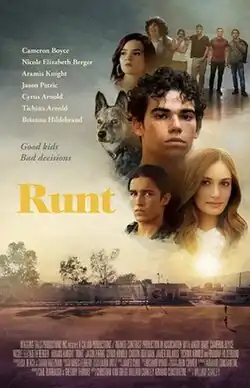 Runt is a 2020 American drama thriller film directed by William Coakley from a screenplay by Coakley, Armand Constantine, and Christian van Gregg.[3] It stars Cameron Boyce in his final film role, alongside Nicole Elizabeth Berger, Aramis Knight, Jason Patric, Cyrus Arnold, Tichina Arnold, Brianna Hildebrand and Aydin Etehadi.