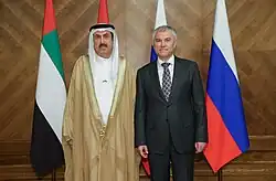 Saqr Ghobash with Vladimir Putin's close associate Vyacheslav Volodin in Moscow, Russia, 24 May 2023