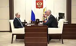 Russian President Vladimir Putin meeting with the CEO of the Russian Direct Investment Fund Kirill Dmitriev in 2020