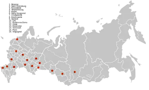 Location of most populous cities in Russia