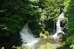 Ryūzu Falls (龍頭滝, -taki, lit. "Dragon's Head Waterfall") is a waterfall located upstream from the Yugawa River which makes its way into Lake Yunoko and Lake Chūzenji. It is located near Nikkō in Tochigi Prefecture, Japan.
