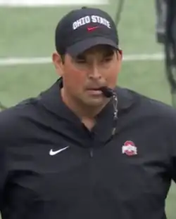 Ryan Patrick Day (born March 12, 1979) is an American football coach and former college football player. He is the 24th and current head football coach at Ohio State University, a position he has held since 2019. Day was also the acting head coach for the Ohio State Buckeyes for the first three games of the 2018 season. He attended the University of New Hampshire in Durham, where he was a quarterback and linebacker for the Wildcats from 1998 to 2001 before beginning his coaching career in 2002.
