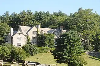 The estate was developed on what was previously farmland by Isabella Douglass Curtis, the widow of a wealthy New York City banker who died in 1895. She named the property in memory of her previous estate in Rye, New York. The house was designed by architect Wilson Eyre, and was completed in 1910; the gardener's cottage was designed by Wilder and White and was built the following year. The property was prominently marketed by Eyre as a showcase, appearing in a writeup in American Architect in 1911, and meeting most of the conditions laid out in his 1908 article "The Planning of Country Houses". Curtis lived here year-round with her son until the 1930s, when financial reverses forced her to sell it.[3]