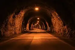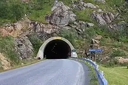 Work on the tunnel was begun in 1977 under the leadership of the engineer Edward Pegg, and the tunnel was opened on October 17, 1980. Built at a cost of 35.5 million kr, this was the most expensive tunnel project in Norway until that time and also the most difficult. One-sixth of the tunnel has molded concrete vaulting.[1]