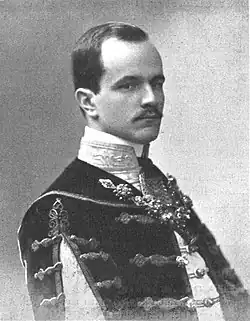 He functioned as an attaché at the embassy in Madrid from 1908 to 1910. He was secretary at the embassy in London from 1910 until 1912, when he was transferred to Berlin, serving in this capacity until 1918, when he was promoted to the rank councillor there. At the end of the WW1, Khuen-Héderváry was transferred to the dual ministry's press department.[2]