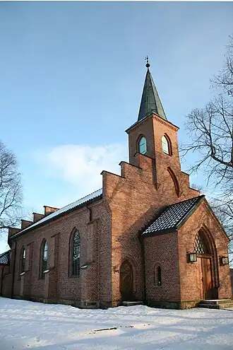 Sørkedalen Church is a church in Sørkedalen in Oslo, Norway. The edifice is made of brick and has 250 seats. The church is in the Gothic Revival style. Adjacent to the church is a cemetery. Christian Heinrich Grosch had been tasked to prepare plans and drawings for the church and it was consecrated on September 15, 1865 by Bishop Jens Lauritz Arup. The surrounding cemetery was also consecrated at the same time.[2]