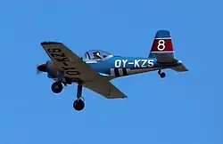 The SAI KZ VIII was an aerobatic sport aircraft first built in Denmark in 1949. Designed by Björn Andreasson,[1] it was a low-wing cantilever monoplane of conventional configuration with fixed tailwheel undercarriage and a single seat. The first KZ VIII was custom-built by SAI for the Danish aerobatic display team Sylvest Jensen Luftcirkus, in which Peter Steen piloted the aircraft in some 50 performances in summer 1950. At the same time a full set of parts for a second aircraft was produced but this was not assembled until 1959. In 1996 another was completed by amateur builder Hardy Vad, powered by a flat-four engine.[2]