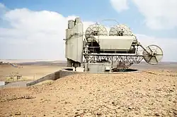 The Fan Song radars are capable of tracking 6 targets at a time, and can guide up to three missiles at once to it. The radars feature two orthogonal antennas, one for azimuth and one for elevation, which can operate in a track-while-scan mode. These antennas transmit 10 × 2 degree or 7.5 x 1.5 degree beams and perform a 'flapping' motion as they scan their sectors.[1][2]