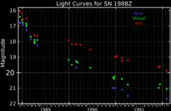 - ^ Stathakis, Raylee A.; Sadler, Elaine M. (June 1991), "What was supernova 1988Z?", Monthly Notices of the Royal Astronomical Society, 250 (4): 786, Bibcode:1991MNRAS.250..786S, doi:10.1093/mnras/250.4.786.