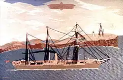Australasian took part of the New South Wales Contingent to serve in Sudan with British forces as part of the Suakin Expedition, arriving at the Red Sea port of Suakin on 29 March 1885. In 1906 the Ottoman Government bought her and renamed her Scham. She was torpedoed by HMS E11 on 6 August 1915 in the Sea of Marmara. She was beached near Constantinople to prevent from sinking. Salvaged in 1918 she was reduced to a coal hulk. She was scrapped at Savona, Italy in 1955.[1]