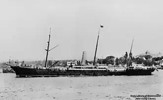 SS Australasian, was built in 1884 by Robert Napier & Co of Govan, Glasgow for George Thompson & Son (Aberdeen Line).[1] She weighed 4,000 long tons (4,100 t).[2]