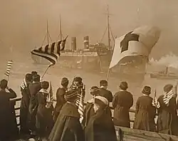 Belgenland then resumed her transatlantic service between Antwerp and New York.[39] On 18 July she reached New York from Antwerp carrying only 269 passengers.[40] On 23 July she left again carrying only 320 passengers, of whom 122 were in first class.[41] On 12 September she docked in New York carrying 1,326 passengers.[42]
