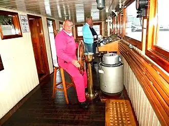 The icebreakers of Stettin were handled by the Braeunlich shipping company, which ran a seaside resort ferry service along the coast during the summer. Its other ships had similar engines, so a single technical staff could be employed year round. Stettin was run by a crew of 22 men. This system was in place until the end of World War II.