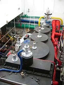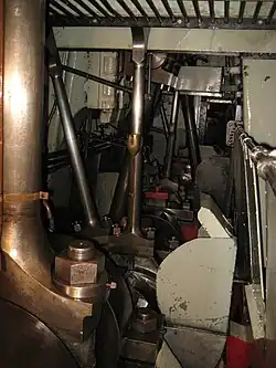 PropulsionTriple expansion compound steam engine with Stephenson valve gear powered by 2 hard coal boilers consuming 600 - 1000 kg/h, capacity 5800 kg/h steam each at 14,5 bar and 196 °C