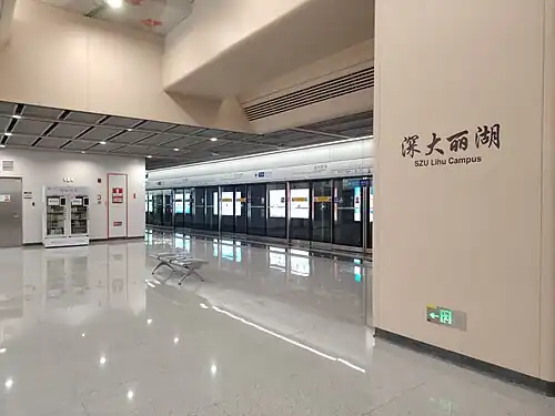 SZU Lihu Campus station (simplified Chinese: 深大丽湖; traditional Chinese: 深大麗湖; pinyin: Shēndà Lìhú Zhàn; Jyutping: Sam1 Daai6 Lai6 Wu4 Zaam6) is a station and the western terminus on Line 7 of Shenzhen Metro. It opened on 28 December 2024,[1][2] and is located in Nanshan District, next to Shenzhen University Lihu Campus and Shenzhen University General Hospital.[3][4]