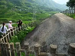 Sa Pa was a frontier and market and capital of former Sa Pa District in Lào Cai Province in north-west Vietnam. It was first inhabited by people about whom nothing is known. They left in the entire valley hundreds of petroglyphs, mostly composed of lines, which experts think date from the 15th century and represent local cadastres. Sa Pa is home to more than 200 pieces of boulders with ancient engravings. The "Area of Old Carved Stone in Sapa" has been in the UNESCO tentative list since 1997.[3] Then came the highland minorities of the Hmong, Yao (Dao), Giáy, Pho Lu, and Tày peoples, still present in Sa Pa district today. The Kinh (lowland Vietnamese) never originally colonised this highest of Việt Nam's valleys, which lies in the shadow of Phan-Xi-Pǎng (Fansipan, 3143 m), the highest peak in the country.[4]
