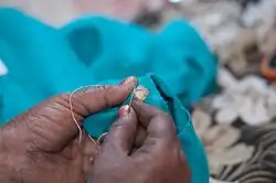 The social enterprise, Sabala Handicrafts was created to provide economic opportunities to the Lambanies (Banjaras) and all other marginalized women. Sabala Handicrafts is organized as a linked enterprise and is run through their craft center.[2] The women become artisans through training in the art of embroidery, weaving and or sewing. Although the Craft Center is the head of the operations, much of the work is done villages of the locals as the Sabala Handicraft team transports materials and finish goods throughout the area. This allows the artisans to tend to their households and children while maintaining employment.[3]