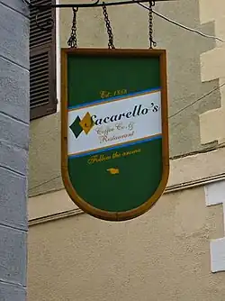 P. Sacarello Limited, more commonly known as Sacarello's, is a coffee roasting family business and coffee shop/restaurant in the British Overseas Territory of Gibraltar. Originally Italian, the Sacarello family first established itself in Gibraltar in the early 19th century and, despite economic upheavals, has served the Rock for over 125 years. The Sacarellos owned a merchant house at 57 Irish Town, on the corner of Tuckey's Lane, since 1906 which, until 2024,[1] housed their coffee shop.