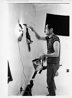 Sadaharu Horio (堀尾貞治, Horio Sadaharu, born April 5, 1939, in Kobe, died November 3, 2018, in Kobe) was a Japanese visual and performance artist. From 1966 to 1972 he was a member of the Gutai Art Association and produced sculptural canvasses. From the late 1960s on, his work increasingly included large-scale installation artworks, performances and interventions in urban and natural environments. His performances often spontaneously involved the audience in collective creative activities. Horio became a crucial figure in the formation of an alternative and open art scene in the Kansai region. His work is characterized by a strong connection between the act of painting and everyday life, his repudiation of distinction between high and low art, and the ease and humor with which he adapted his performances and installations to changing sites and cultural contexts, making them accessible and open for different audiences.